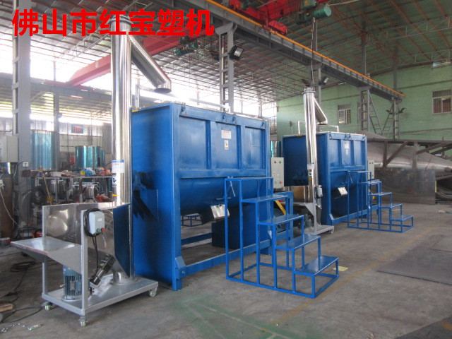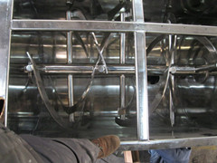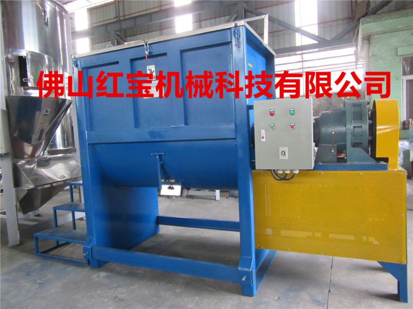 1.機槽為U形體,采用不銹鋼制造,內裝攪拌槳葉,橫臥在塑料臥式攪拌機的減速器與倒料減速器上.